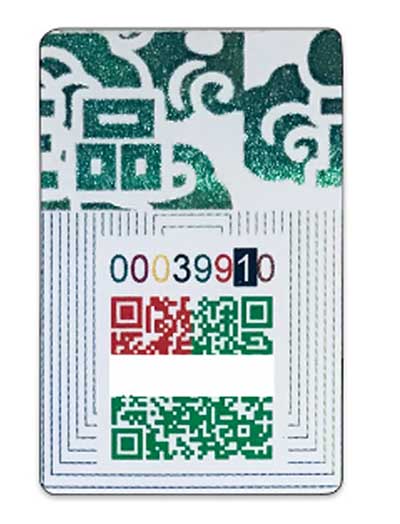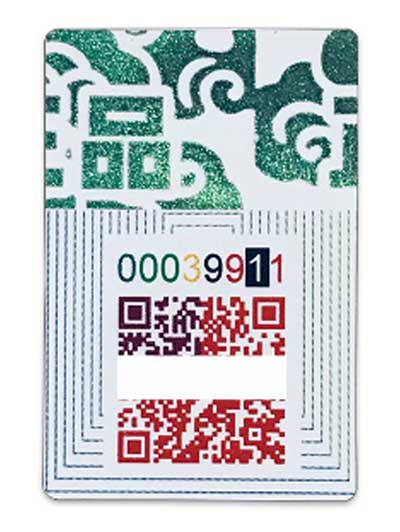 多重防伪 , 性能可靠。 其防伪信息,既有防伪码数字信息又有每一位防伪码的颜色信息
